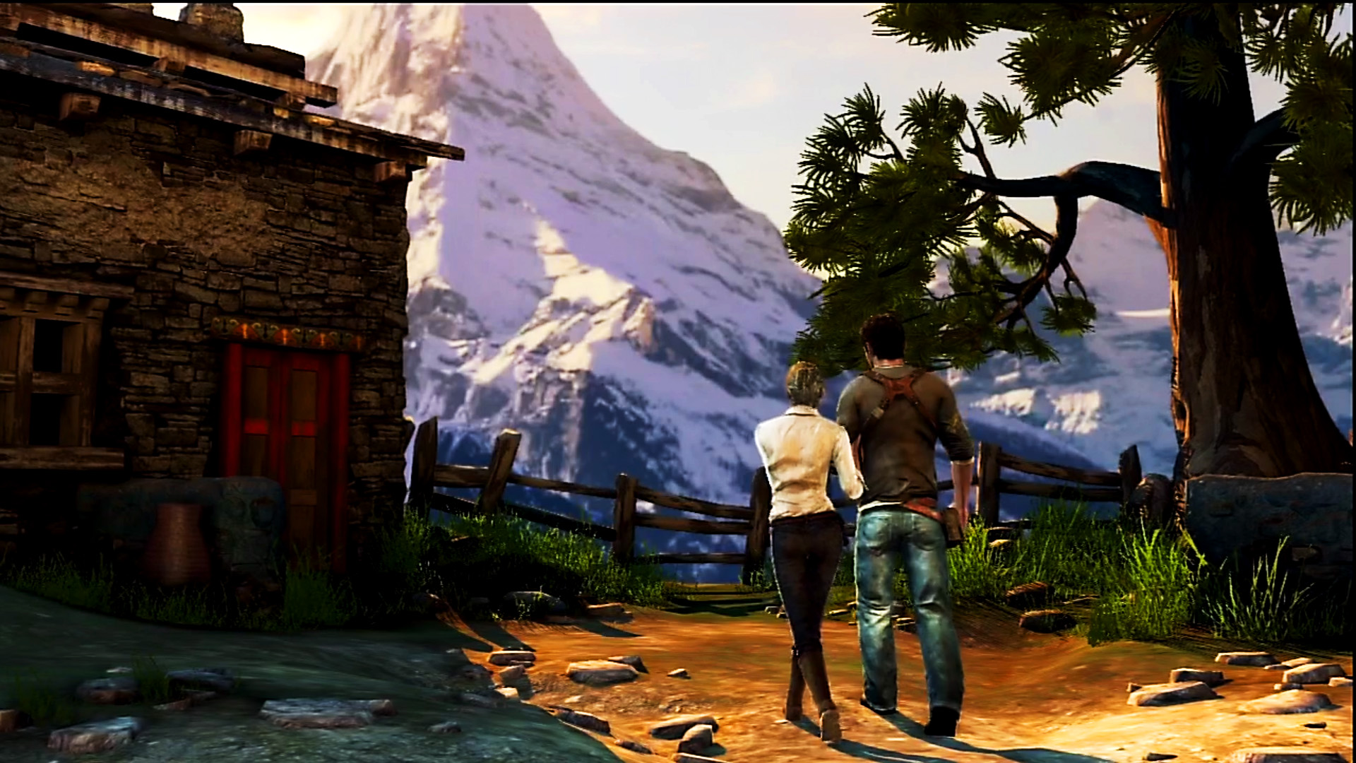 When Nate comes to, Tenzin brings him to Karl Schäfer's home, where Elena is sitting with Pema. Nate and Elena are overjoyed to see each other again and embrace. Elena brings Nate to meet Schäfer, who, like Nate, once went on an expedition to find the Cintamani Stone and was also brought to the village near-death. Schäfer explains that the Stone isn't merely a gemstone, but it grants its owner immeasurable power. Nate assumes that this is only a myth, but Elena isn't so sure, citing Lazarević's actions to get the Stone. Schäfer offers Nate more evidence, so he sends him and Tenzin into the mountains to find the remains of his expedition. As Nate prepares to leave, Elena kisses him on the cheek, telling him to come back safely.
