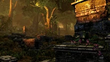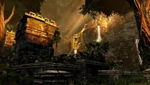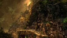 Nathan Drake and Victor Sullivan came across this area on their quest to rescue Marisa Chase from Roberto Guerro. They fought against a large group of Guerro's men. This area sits just below the large temple that the two had to climb. It features many tall structures, some of which Nate can climb on. A bunch of different treasures, such as charcoal rubbings and glyphs, can be found here. Several of the tall stone structures have charcoal rubbings at the top. The player can climb them to collect the rubbings.