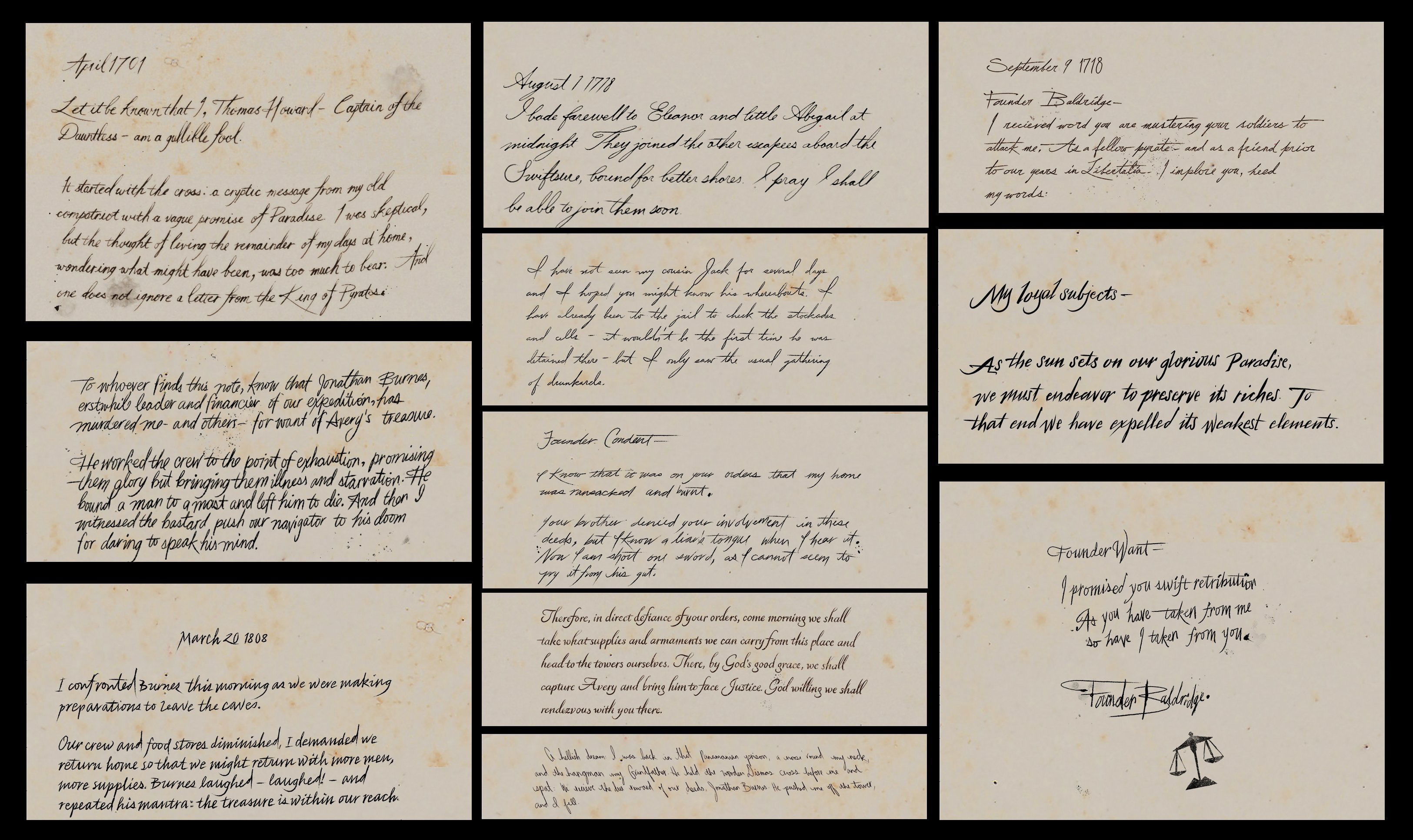 With the rebels dead, the founders soon began to turn on each other. To end it all, Avery had Tew invite them to the latter's mansion where they were told that they were going to make peace. Unfortunately, the founders learned too late that Tew had poisoned their drinks and with them dead, Avery and Tew had all the treasure for themselves. But before Avery could get away with it, Tew felt guilty for what he had done and realized it was only a matter of time before Avery turned on him as well, so he betrayed him and led a battle that resulted in the deaths of Avery, Tew and their armies. By then, Avery had destroyed the dam near New Devon, flooding the settlement and all its mansions save Avery’s.
