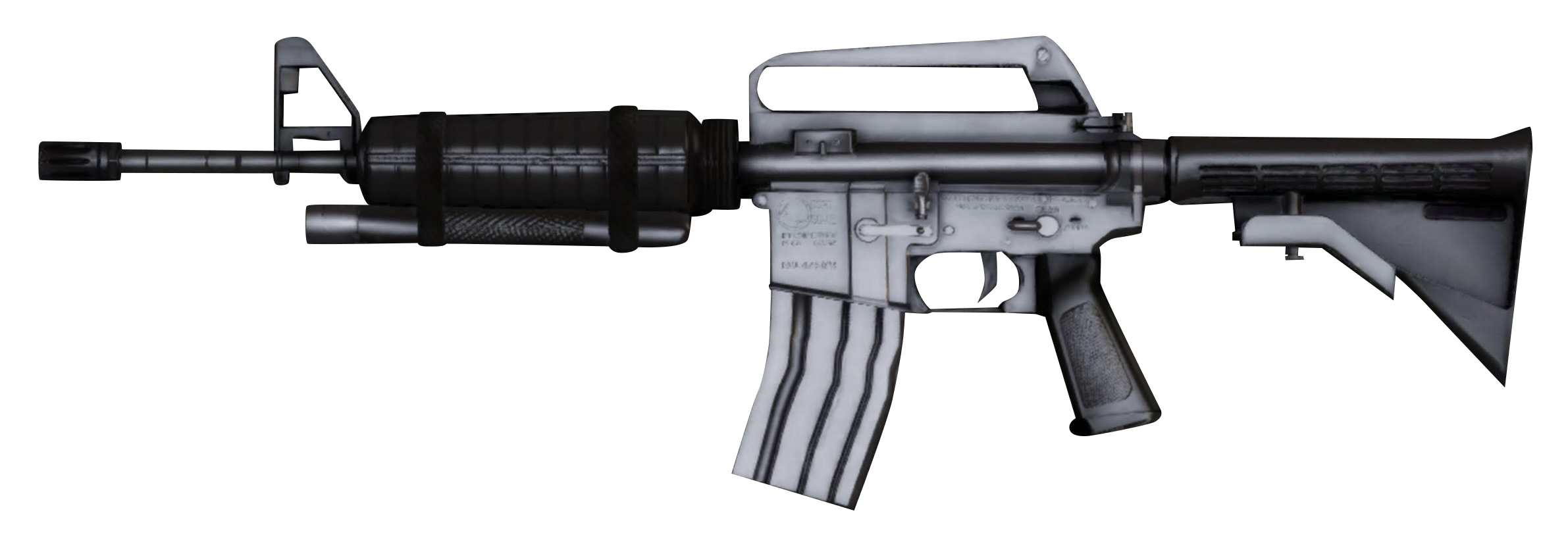 In Drake's Fortune and Among Thieves, the M4 is seemingly modeled after the Colt Model 653, a carbine based on the M16A1 rifle. It is distinguished by the non-detachable carry handle, its thinner "pencil" barrel, and lack of a brass deflector. In A Thief's End, it is modeled on the Colt Model 6920 Law Enforcement Carbine, a commercial version of the M4 carbine with a 16" barrel and semi-automatic only trigger.
