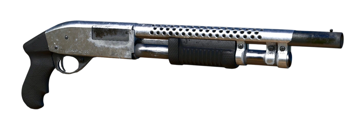 The Spezzotti 12 Gauge has high damage (at close range), high recoil and spread, and a slow rate of fire.It's best used at close range.